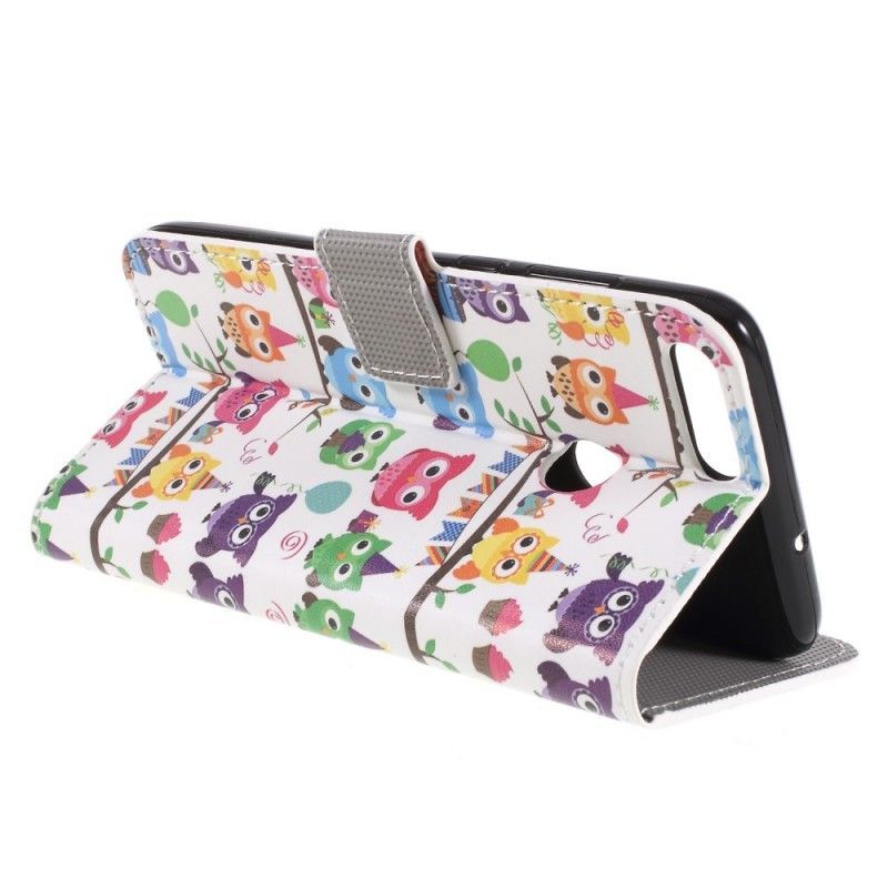 δερματινη Κάλυμμα Για Huawei P Smart Γαλάζιο Πολύχρωμες Κουκουβάγιες