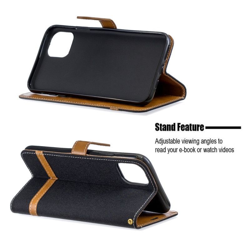 δερματινη Κάλυμμα iPhone 11 Pro Max Μαύρο Υφασμάτινο Και Δερμάτινο Λουράκι Πρωτότυπος