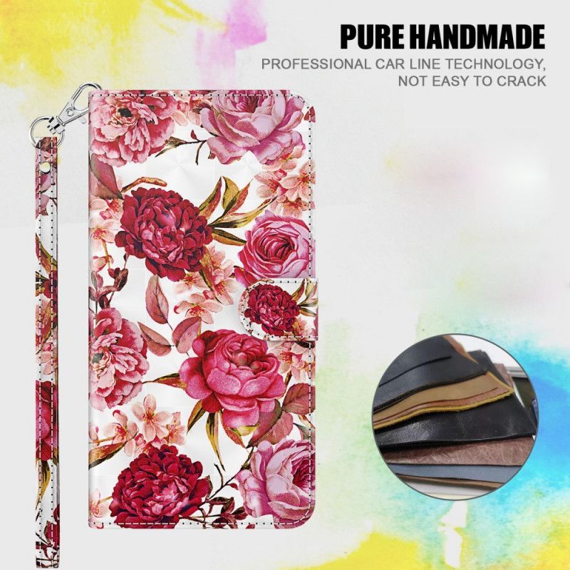 δερματινη Κάλυμμα Samsung Galaxy A32 5G Ανοιχτόχρωμα Τριαντάφυλλα Με Κορδόνι σιλικόνης