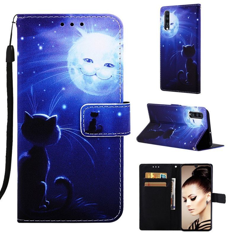 δερματινη Κάλυμμα Samsung Galaxy A70 Στρινγκ Γάτα Φεγγαρόφωτος