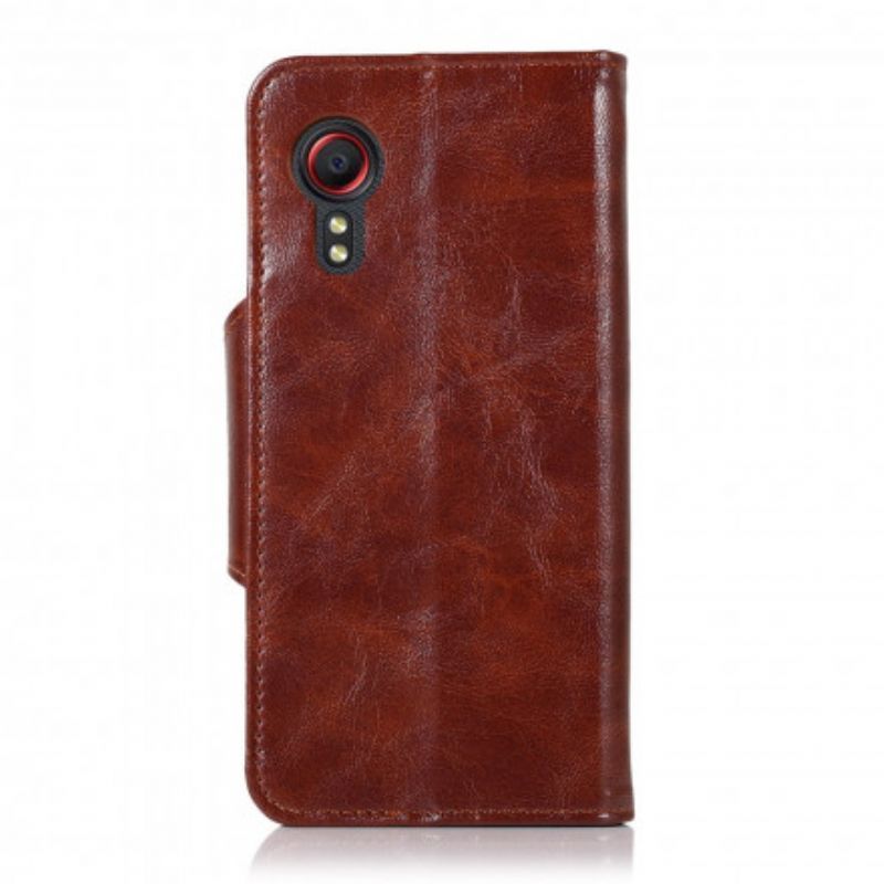 Το Samsung Galaxy XCover 5 σας προστατεύεται τέλεια με αυτό το μοναδικό κάλυμμα από ψεύτικο δέρμα εξοπλισμένο με 6 θήκες για κάρτες με ασημί κούμπωμα.