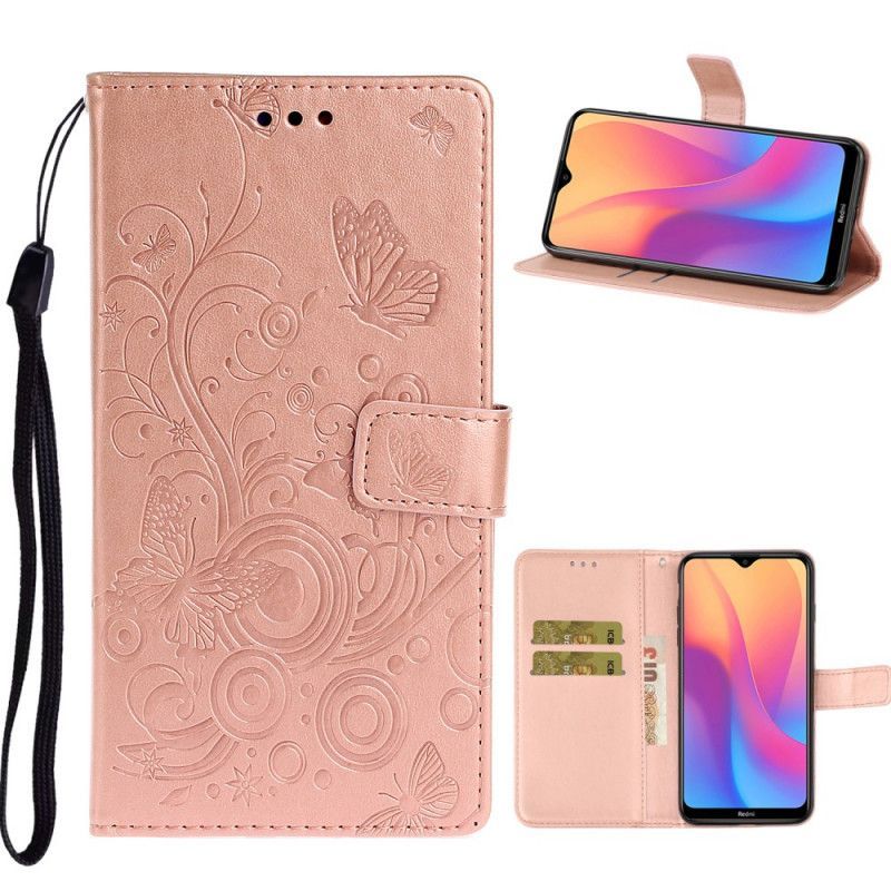 δερματινη Κάλυμμα Xiaomi Redmi 8A Μωβ Ανοιχτό Πολύχρωμες Πεταλούδες Και Λουλούδια Πρωτότυπος