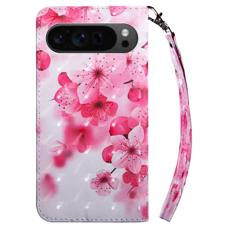 Δερματινη Θηκη Google Pixel 9 Κόκκινα Λουλούδια Με Λουράκι