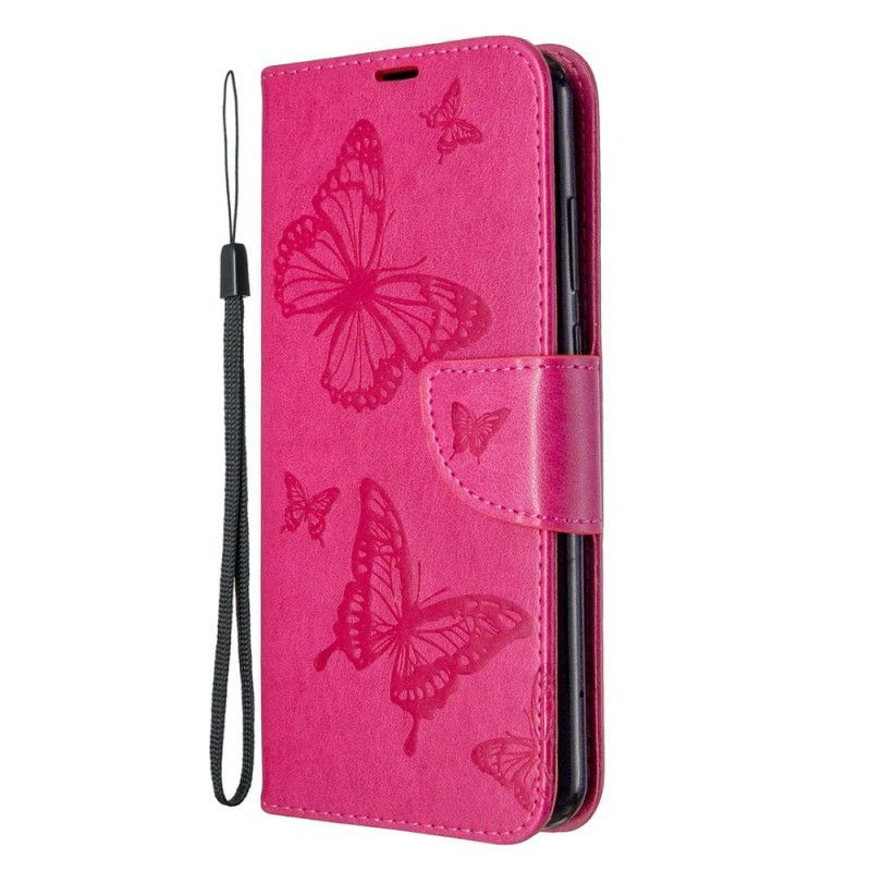 Κάλυμμα Folio Huawei Y6p Γκρι Πεταλούδες Και Λοξό Πτερύγιο