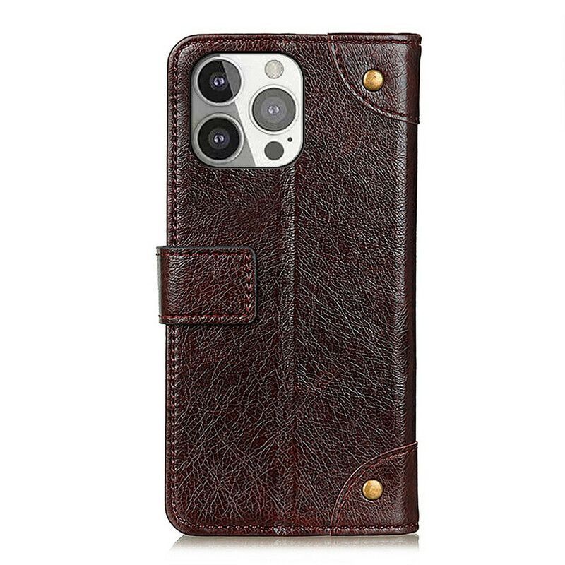 Δώστε ένα στυλ δέρματος nappa στο iPhone 13 Pro σας με vintage πριτσίνια και προστατέψτε το σαν πορτοφόλι με αυτό το λεπτό και ελαφρύ κάλυμμα.