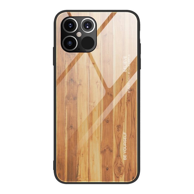 Κάλυμμα Για iPhone 12 Mini Μαύρο Σκληρυμένο Γυαλί Με Σχέδιο Ξύλου