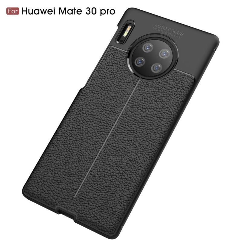 Κάλυμμα Huawei Mate 30 Pro Μαύρο Εφέ Από Δέρμα Λίτσι Διπλής Γραμμής Πρωτότυπος