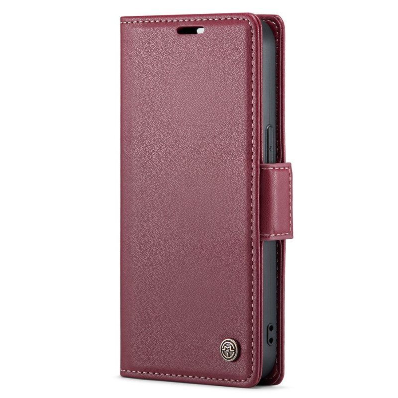 Ένα Κάλυμμα Σε Σούπερ Δερμάτινο Στυλ, Σχεδιασμένο Από Την Caseme Για Το Iphone 15. Το Οποίο Χρησιμεύει Ως Πορτοφόλι Και Προστατεύει Τις Κάρτες Από Κλοπή Δεδομένων.