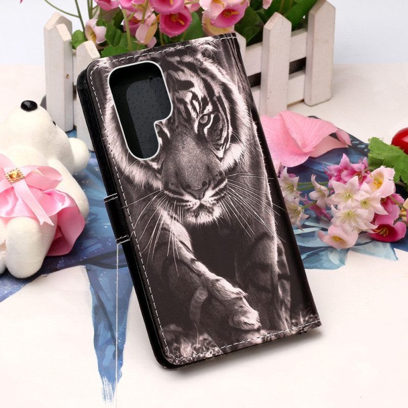 Αυτή Η Θήκη Με Το Σχέδιο Μιας Τίγρης Τη Νύχτα, Η Οποία Συνοδεύεται Από Λουράκι, Είναι Ιδανική Για Το Samsung Galaxy S23 Ultra 5G Σας Σε Καθημερινή Βάση.